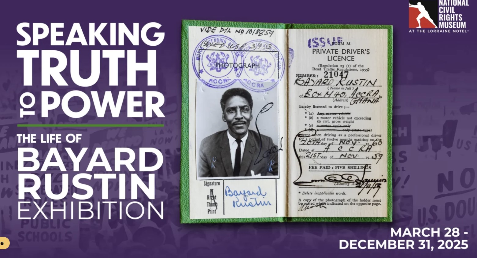 The National Civil Rights Museum in Memphis, Tennessee, located at the preserved Lorraine Motel where Martin Luther King, Jr. was assassinated, is shining a light on Rustin’s central work in the Civil Rights Movement as well as his contributions to the international peace and human rights movements. The new exhibit, “Speaking Truth to Power: The Life of Bayard Rustin,” runs through December 31 and will serve as the basis for a permanent exhibit as part of the museum’s expansion in 2026.